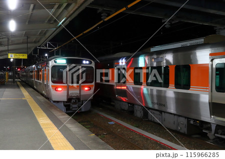 PM11:00:終電前のJR亀山駅に留置中の関西本線315系電車