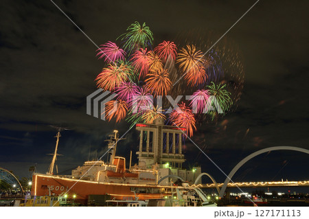 愛知県の名古屋港の花火大会と夜景
