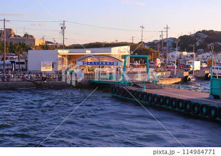 篠島のフェリー乗り場と桟橋、ターミナル前の夕焼け(愛知県 美浜町)