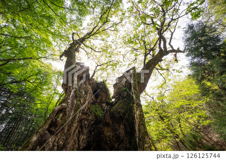 新緑の君尾山の大トチノキ(京都府綾部市)