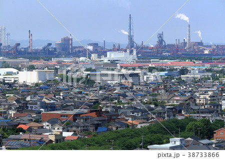 千葉県君津市の街並みと工場地帯の夕暮れ風景