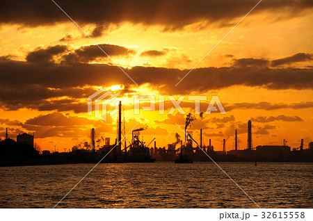 【京葉工業地域 新日鐵住金君津製鐵所の夕景シルエット】
