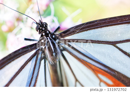 白いフジバカマにとまる渡りの蝶アサギマダラをアップで