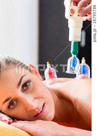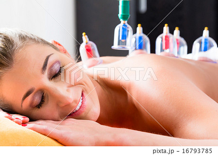 Woman in alternative medical cupping therapy