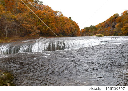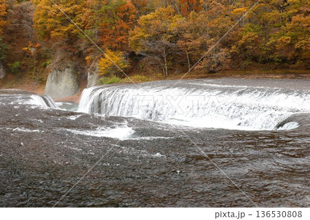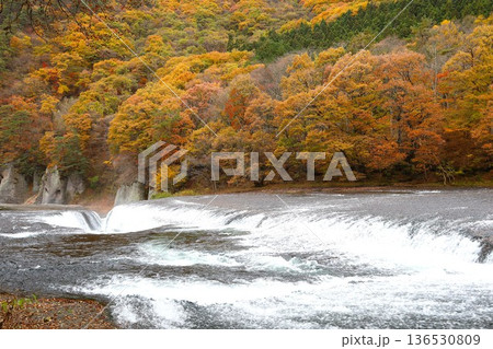 群馬県沼田市の秋 紅葉の吹割渓谷 吹割の滝