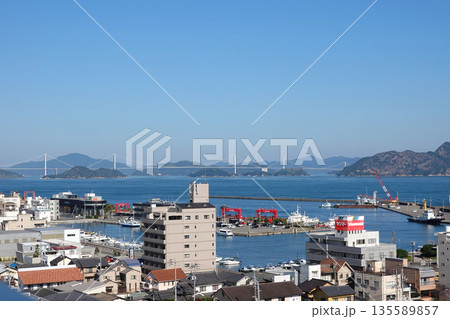 【日本100名城】今治城 梅雨晴れの青空と吹揚神社と今治市街 愛媛県今治市