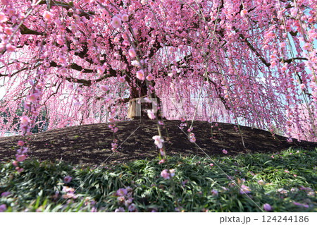 三重県鈴鹿市山本町 赤塚植物園の鈴鹿の森庭園 満開のしだれ梅のカーテン