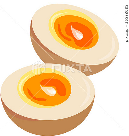 半分にカットした半熟の煮卵(味玉) 卵料理の手描き水彩イラスト素材