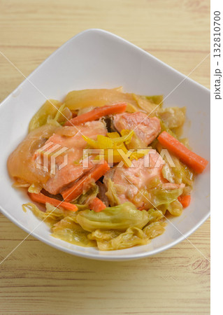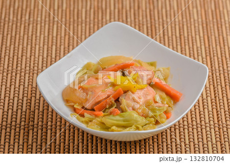 サーモンと野菜のみそ炒め煮