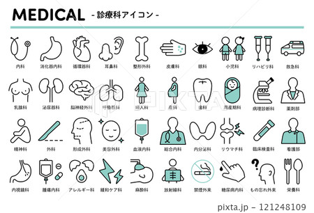 シンプル イラスト 病院の診療科目のイメージ アイコンセット