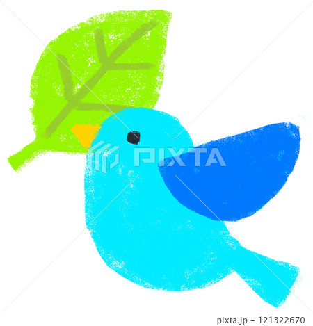 可愛い小鳥と葉っぱ クレヨンタッチ