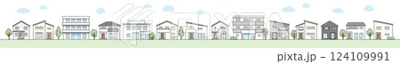 モダンでオシャレな家やマンションが建つ街並みのイラスト