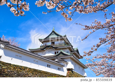 満開の桜と新緑の和歌山城天守閣 和歌山城公園 和歌山県和歌山市