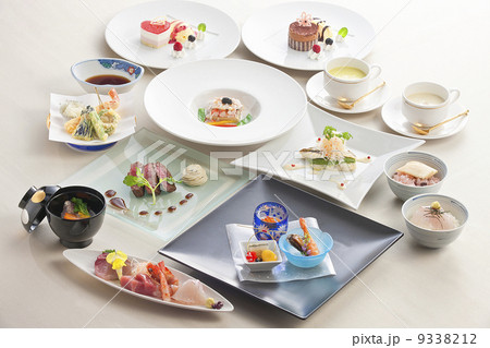 食べ物 パーティー ビュッフェ 料理イメージ 魚 肉 ビュッフェイメージ 和洋折衷料理イメージ