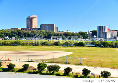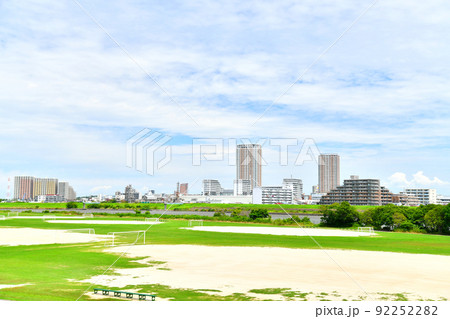 江戸川グラウンド越しに市川駅方面を望む(東京都江戸川区)【2022.7】