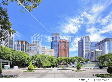 東京 皇居外苑 -和田倉噴水公園とビル群-