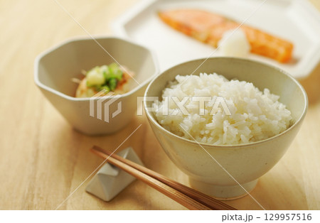 ごはん・朝ごはん・和定食(白ごはん・焼き鮭・冷奴)
