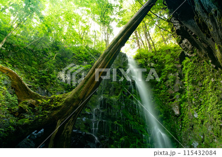 新緑の中を流れる滝