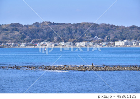 神奈川県逗子市小坪の海岸から西側(和賀江嶋,稲村ヶ崎など)方面の眺望