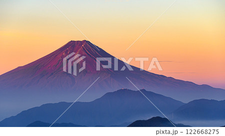 (山梨県)雁ヶ腹摺山から見る赤富士と山並み