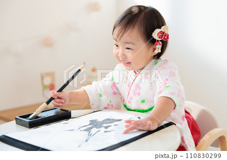 おせちを食べる1歳児 お正月 元旦 節の日 コピースペース