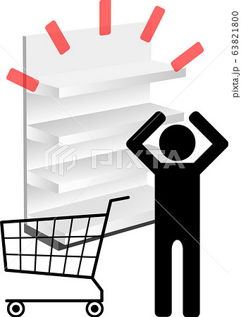 商品が無いスーパーの棚の前で困る人 ベクターイラスト