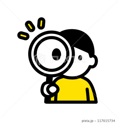虫眼鏡で検査される人のアイコン・ピクトグラム