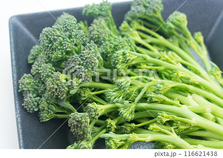 新鮮な茎ブロッコリーの皿もり