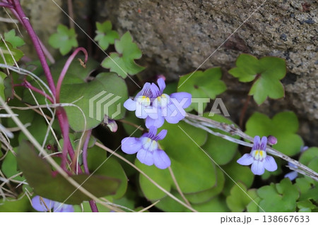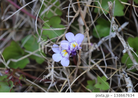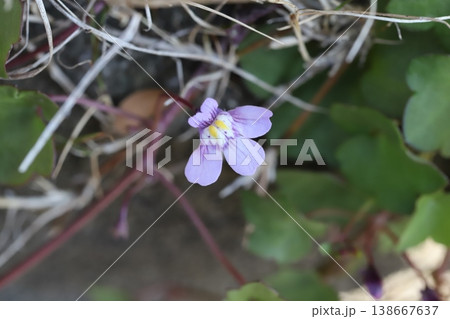 春の道端に咲く薄紫色のツタバウンランの極く小さな花