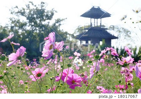 唐古鍵遺跡 楼閣と秋桜