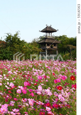 唐古鍵遺跡 楼閣と秋桜