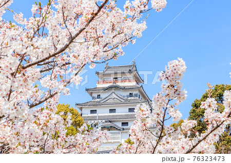 藤の花が見頃を迎えた美しい唐津城(佐賀県唐津市)