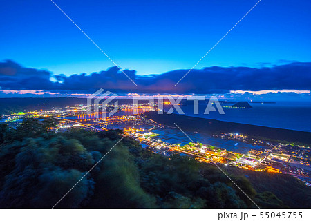 鏡山西展望台から見た美しい虹の松原と唐津市の町並み(佐賀県唐津市)