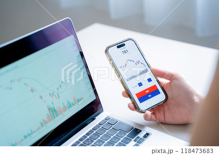 株取引をする若い女性