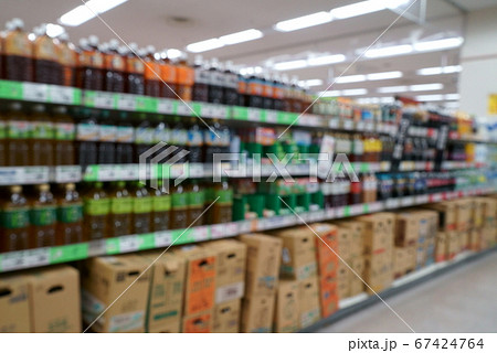 スーパーマーケットの飲料売り場のぼかしイメージ