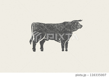 Large bull silhouette for domestic farm industry hand drawn stamp effect vector illustration.