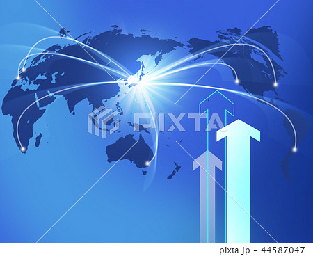ビジネス好調 矢印 上向き 好調 世界地図 右肩上がり