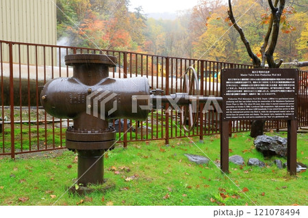 紅葉に染まる松川地熱発電所 松川2号井の主弁