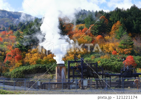 紅葉に染まる八幡平アスピーテライン 松尾八幡平地熱発電所