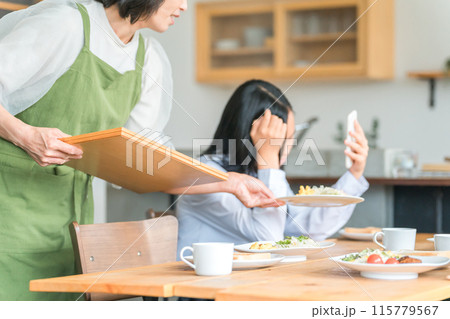 食事中にスマホを使う反抗期の子供と困る両親・家族