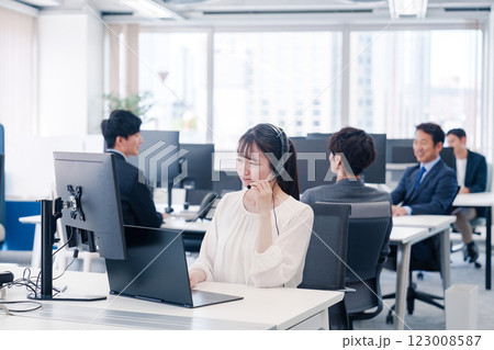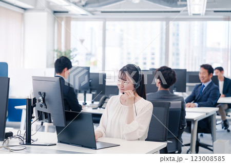 カスタマーハラスメントを受けるコールセンターの女性スタッフ
