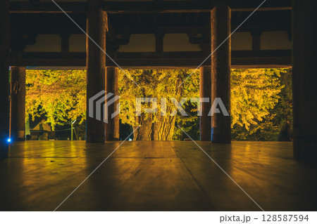 寝殿から見るライトアップされた紅葉