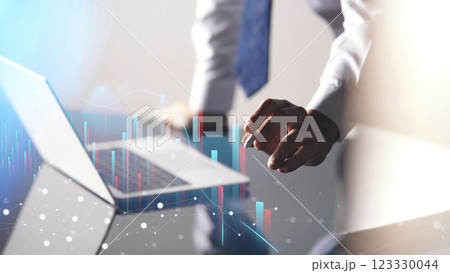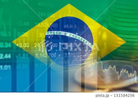 Brazil flag with stock market finance, economy trend graph digital technology.