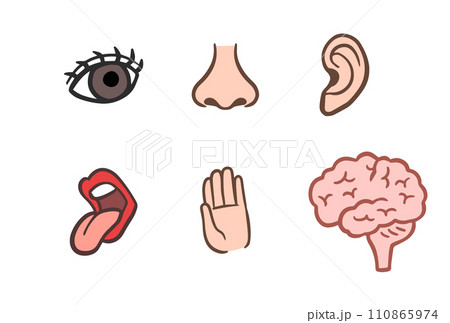 五感、視覚、嗅覚、聴覚、味覚、触覚のセット