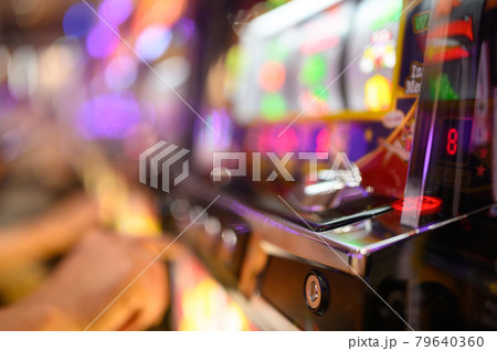 パチンコ スロットを遊戯している手元(アウトフォーカス)
