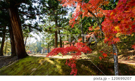 毛越寺の秋 赤く色づいた嘉祥寺跡のモミジ 岩手県