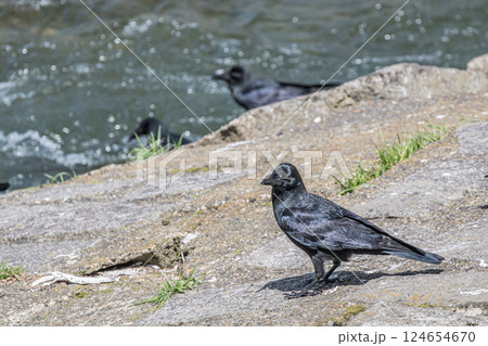 川のほとりのカラス(ハシブトガラス)