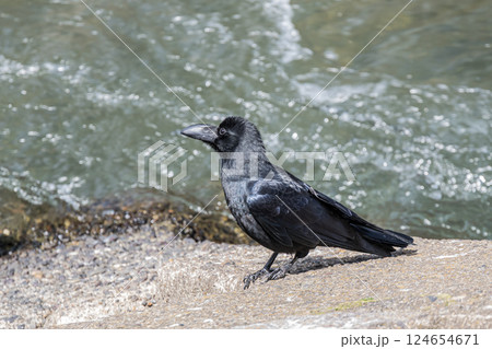 川岸に立つカラス(ハシブトガラス)