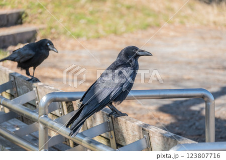 柵の上に止まるカラス(ハシボソガラス) 滋賀県大津市