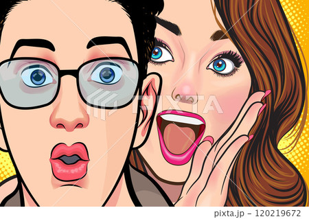 Woman whispering gossip or secret to her friend surprise In Retro Vintage Pop Art Comic